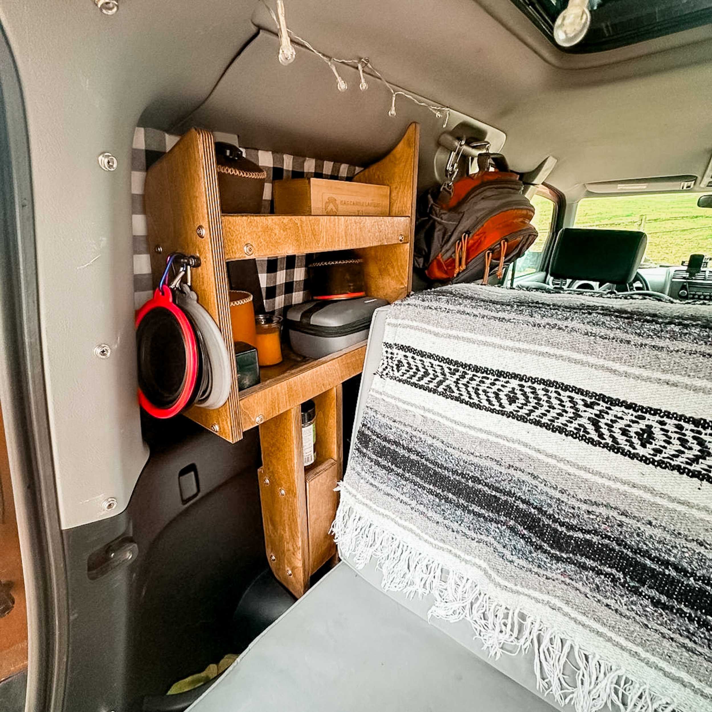 Featuring a two-tier shelf for quick access to your camping essentials and a hidden compartment for valuables, this cubby keeps your gear organized and your space clutter-free.